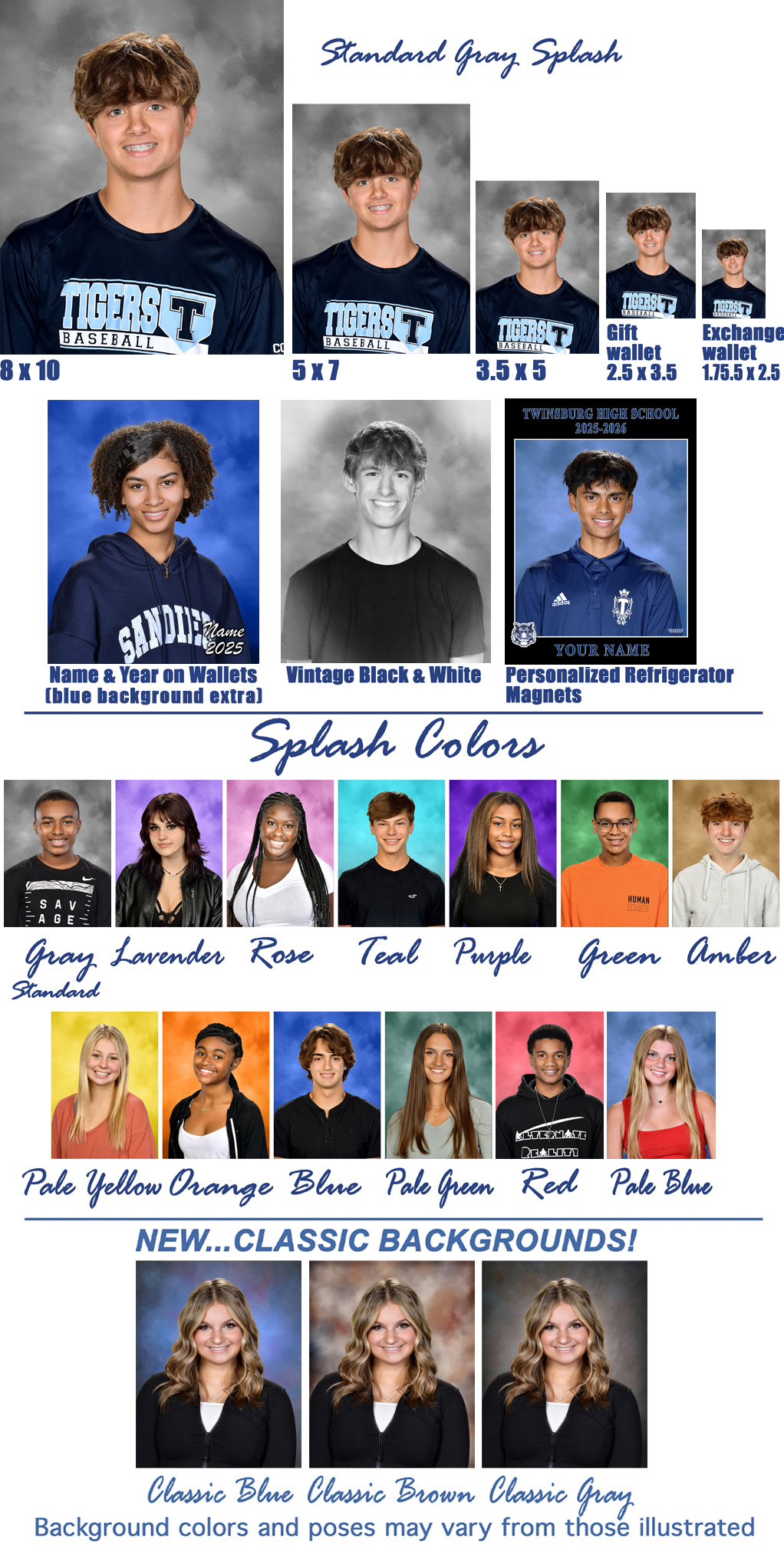 All Freshmen, Sophomores and Juniors will be photographed for yearbook and school records even if you are not purchasing photos.